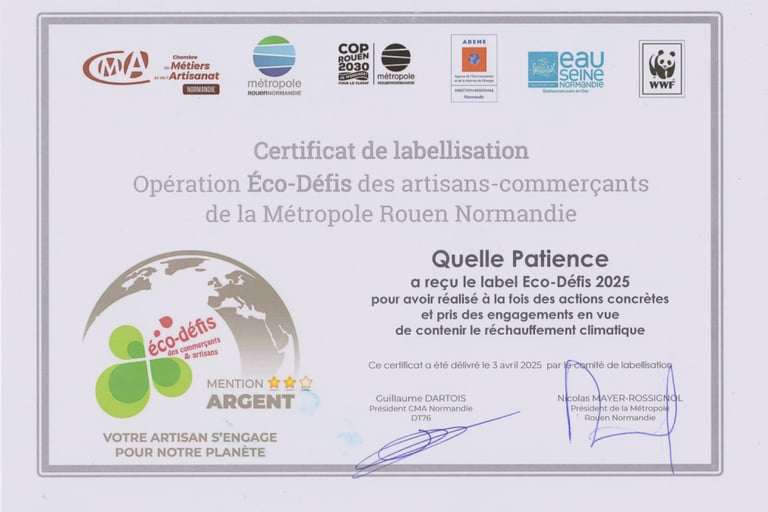 J'ai également obtenu l'éco Label en 2022 et qui a été reconduis en 2025: