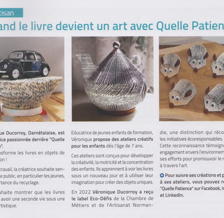 Je transforme les ouvrages oubliés en créations uniques et en supports de sensibilisation.